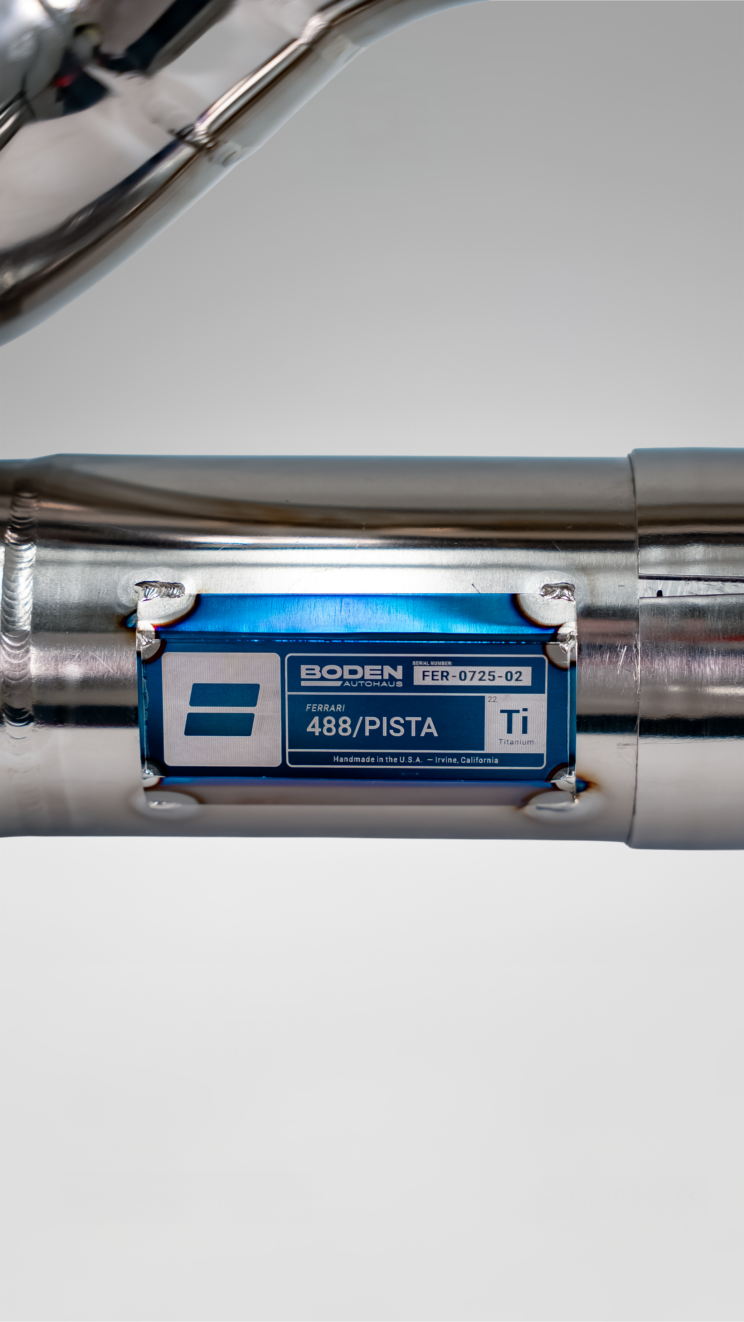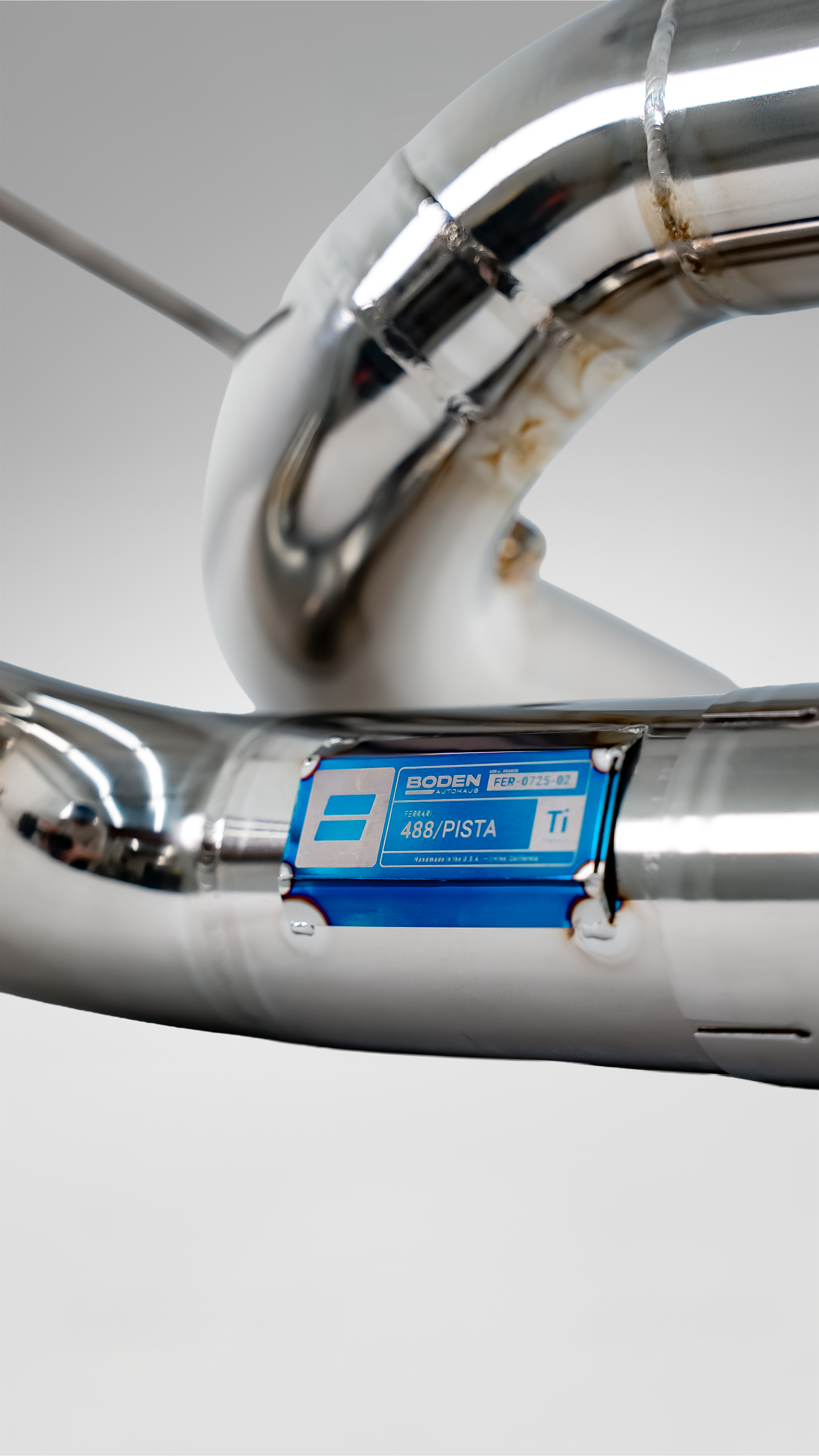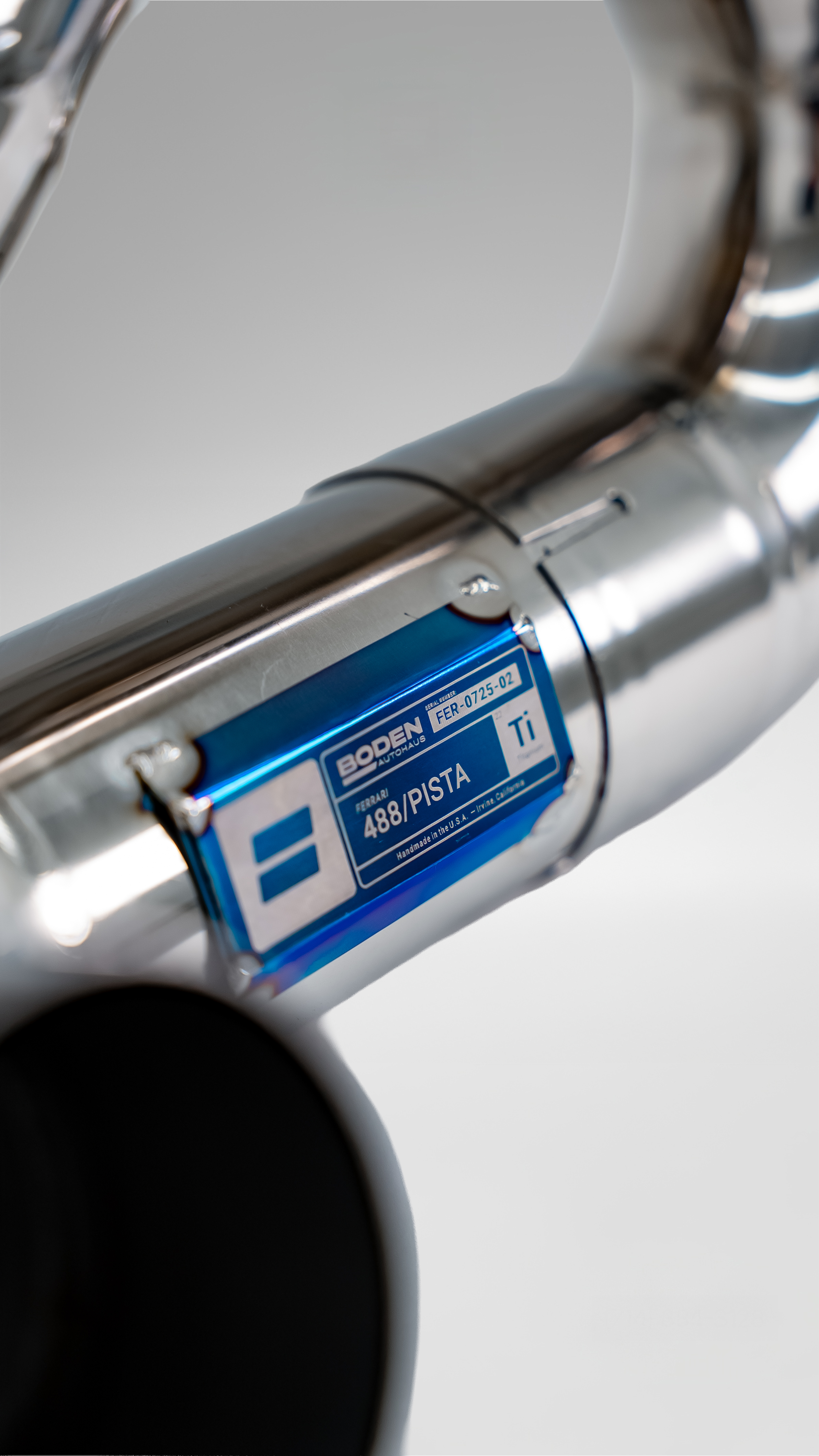 The Boden Autohaus Titanium Valved Catback Exhaust System for the Ferrari 488 GTB, 488 Spider, and 488 Pista is engineered to elevate the performance and sound of Ferrari’s twin-turbo V8 while preserving everyday usability. Designed to complement the advanced characteristics of the 488 platform, this system delivers a sharper, more defined exhaust note with increased presence—without sacrificing refinement when cruising. Advanced internal flow optimization reduces exhaust restriction and improves gas velocity, resulting in faster turbo spool, improved throttle response, and more consistent power delivery throughout the RPM range. The integrated valving system allows the driver to control volume and character, seamlessly transitioning from a restrained, road-friendly tone to an aggressive, track-focused soundtrack on demand. Constructed from ultra-lightweight A1-grade titanium, the Boden Autohaus exhaust weighs just 7 lbs, replacing the 20-lb factory system and removing significant mass from the rear of the vehicle.